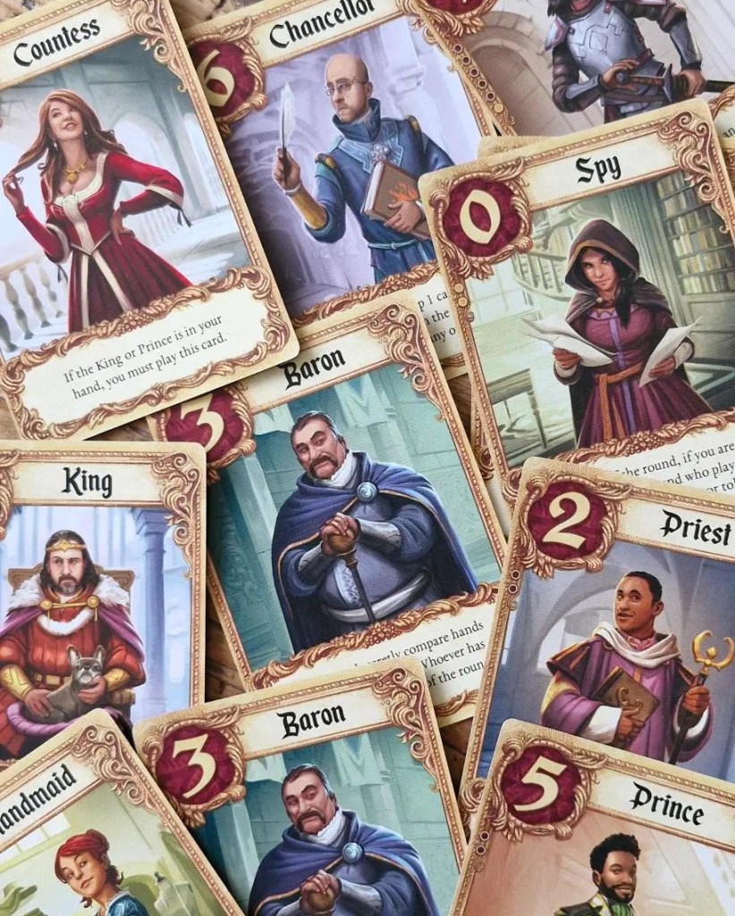Judging by what you’ve read here you’ve probably made the assumption that Love Letter is very simplistic, for which you’d be correct. You’re probably also getting the feeling that because of this it’s suitable for new gamers, a quick little gem to tempt people into the hobby. Well, surprisingly I’m going to say that despite this I’m not sure it would work well with a group of non gamers. It is simple to learn, has very few components which means it doesn’t have an overwhelming table presence and is also quick to play, however I feel to get the most out of Love Letter you need to have dived a bit deeper into the hobby to appreciate its’ simple brilliance.