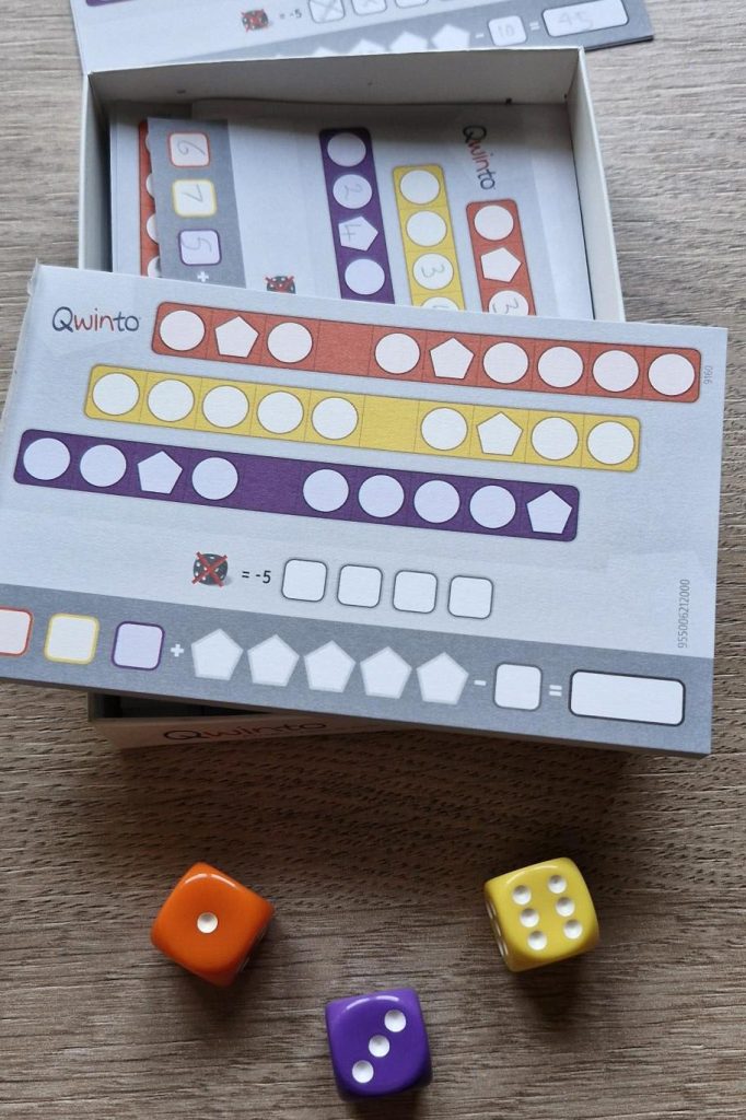 If you know your games, then going by the box art Qwinto is very obviously a roll and write game. The cover shows a collection of dice and some spaces with numbers written in them. In fact even if you don’t know your games then you’ll probably have some idea about what is going to happen. The roll and write genre has had a real resurgence in recent years and seen an array of titles varying in theme and complexity, including the light and tranquil Railroad Ink as well as a Twilight Imperium based game no less! Qwinto however is very much at the lighter end of the scale, in fact I’m not sure there is a lighter roll and write and that includes Yahtzee. Also thematically there is nothing draped over the mechanisms here, you’re not pretending to conquer galaxies or drive trains, you’re just rolling and writing.
