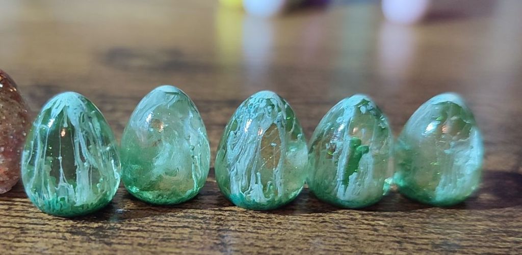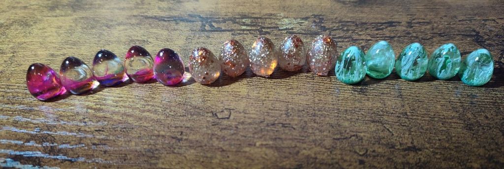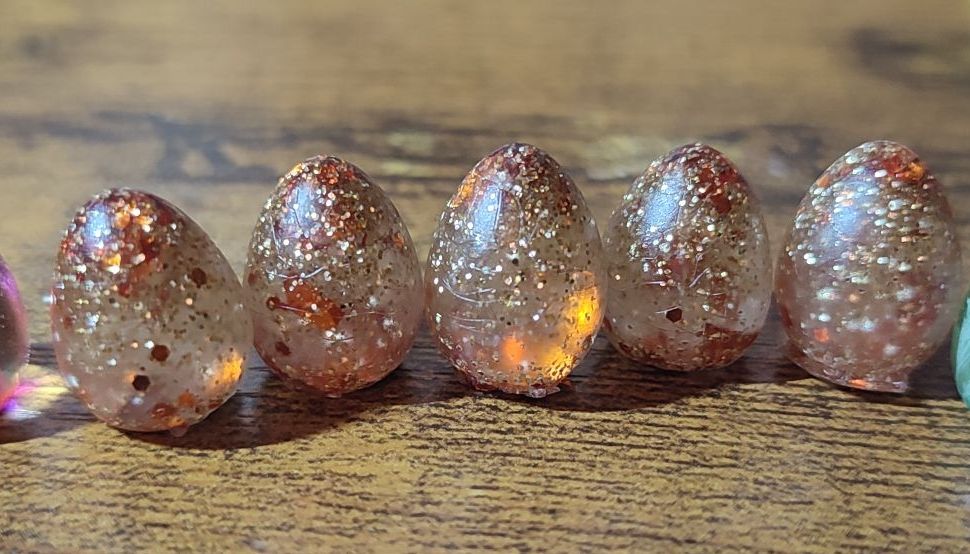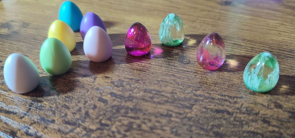 Now the eggs I find fascinating as I’ve recently got into experimenting with resin dice making, and have a couple of egg moulds that I’d like to start experimenting on. There is a gulf of difference between the US and UK eggs, but it’s given me ideas on what works and what doesn’t.